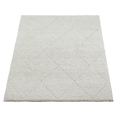Der Bahar Shaggy Teppich vereint Ästhetik mit Praktikabilität. Seine langen, flauschigen Fasern schaffen eine warme, einladende Umgebung und trotzen kalten Böden im Winter. Das skandinavisch inspirierte Rautenmuster in Creme und Grau verleiht Ihrem Raum eine wohnliche Note und passt perfekt zum modernen, minimalistischen Wohnstil.