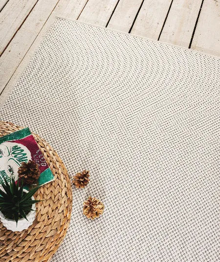 Der Maestro Kurzflorteppich in Cream verbindet mediterranes Design mit hoher Alltagstauglichkeit. Aus 100 % Polypropylen, wetterfest, UV-beständig und ideal für Innen- und Aussenbereiche wie Küche, Esszimmer, Balkon oder Terrasse.