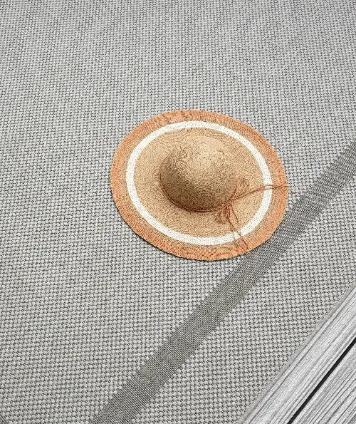 Dank wetterfester und UV-beständiger Eigenschaften eignet sich der Teppich sowohl für Wohnräume als auch für Balkon und Terrasse. Kurzflor (5 mm) verhindert das Festsetzen von Schmutz.