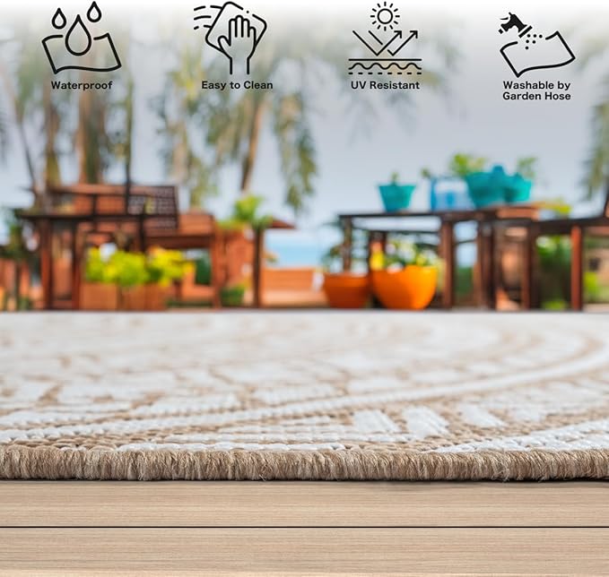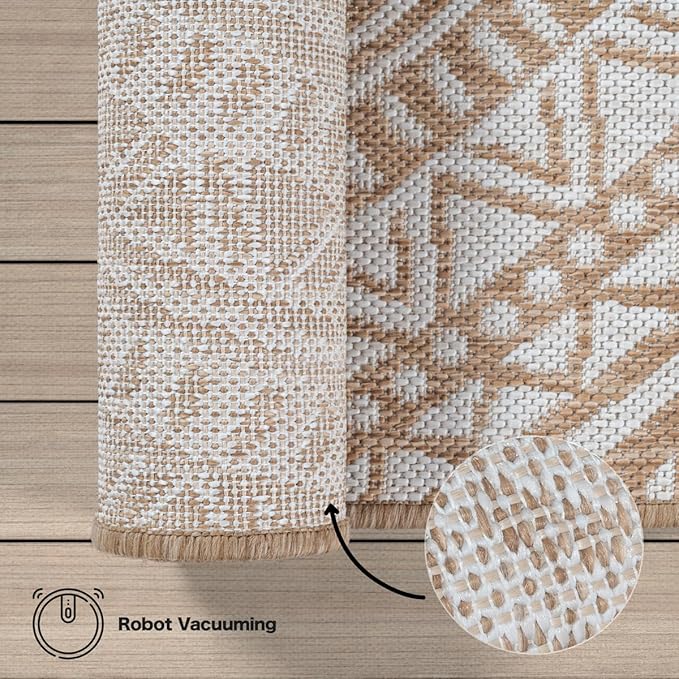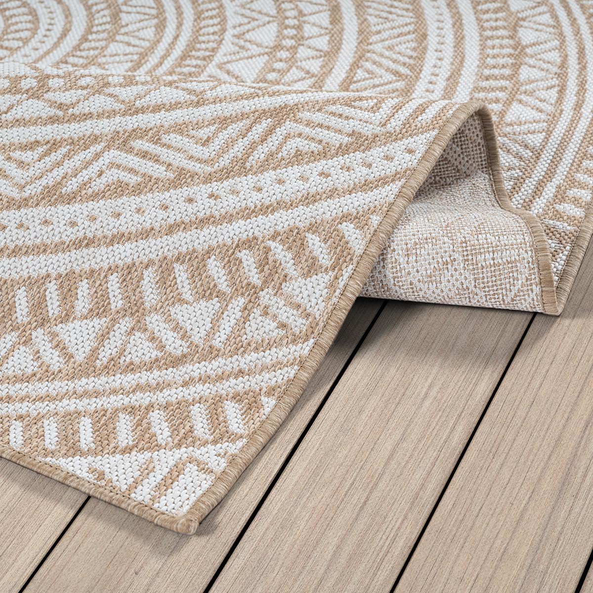 Der Maestro Kurzflorteppich in Nature verbindet mediterranes Design mit hoher Alltagstauglichkeit. Aus 100 % Polypropylen, wetterfest, UV-beständig und ideal für Innen- und Aussenbereiche wie Küche, Esszimmer, Balkon oder Terrasse.