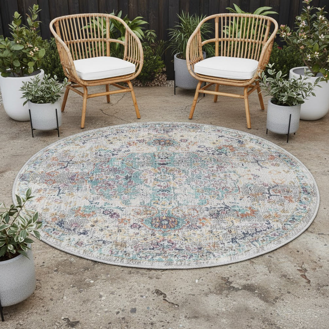 Dank seiner flachen Struktur mit einer Florhöhe von 4 mm ist der Teppich besonders pflegeleicht und strapazierfähig. Das Material ist UV-beständig, wasserabweisend und schnelltrocknend, was ihn zu einer langlebigen Wahl für jede Jahreszeit macht.