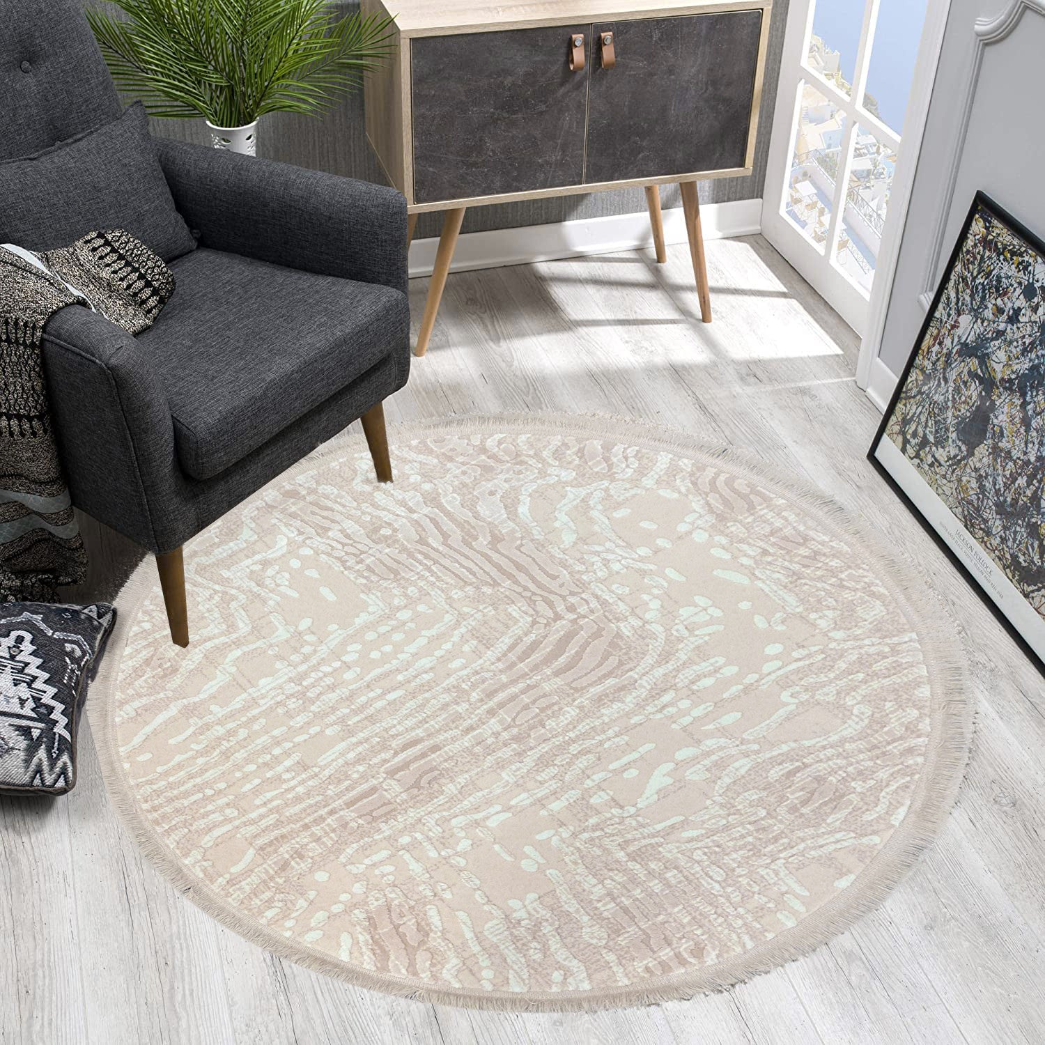 Teppich Günce | Pink |Modernes Acrylteppich mit Fransen | Rund