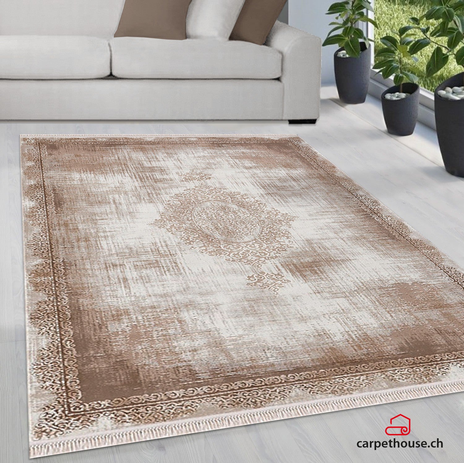 Teppich Rodin 19770 80-Brown, rechteckig, Vintage, Orient, Kurzflor mit Fransen