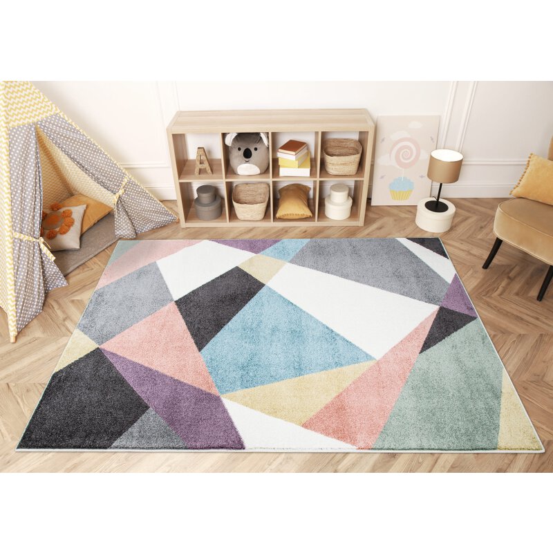 Der farbenfrohe Teppich kann ebenfalls hervorragend als Kinderzimmerteppich in Szene gesetzt werden. So lädt die bunte Motivwelt gleichermaßen zum Toben und Kuscheln ein und eignet sich auch als bequemer und weicher Spielteppich.